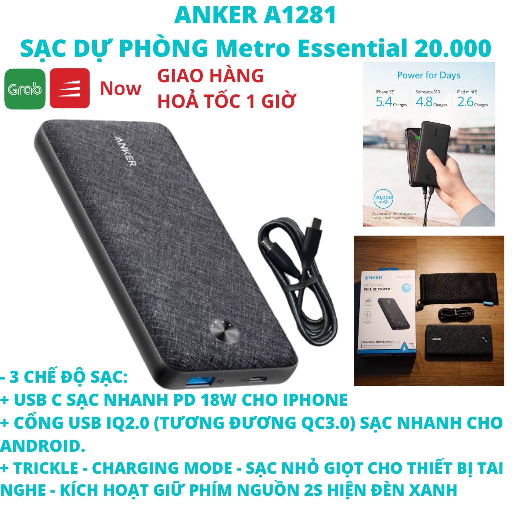 Điện Thoại & Phụ Kiện > Pin sạc dự phòng > >20000mAh || PIN SẠC DỰ PHÒNG 20000 mAh ANKER A1281 Essential 20000mah sạc nhanh PD 18W IPhone Ipad và QC3.0 cho AndroidCòn hàng