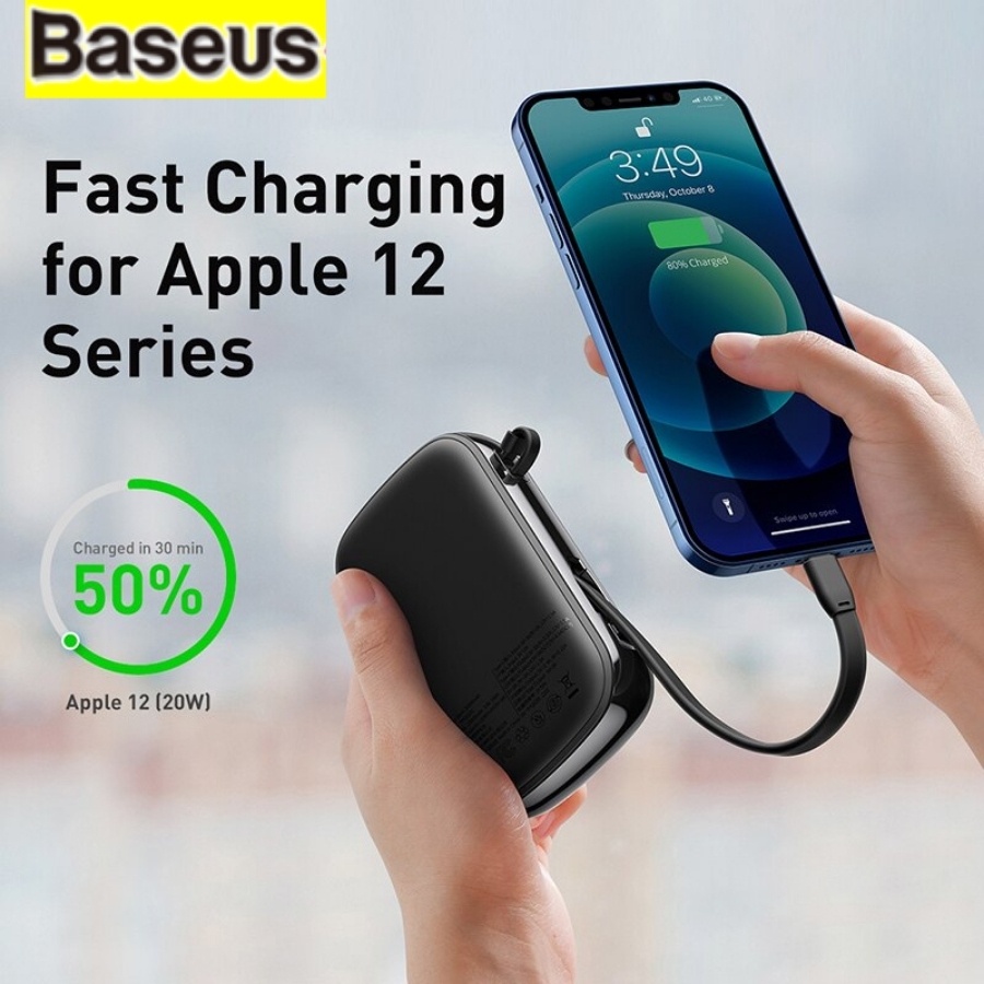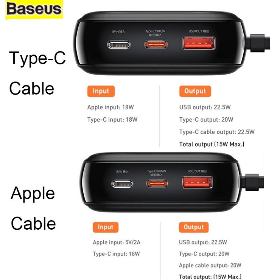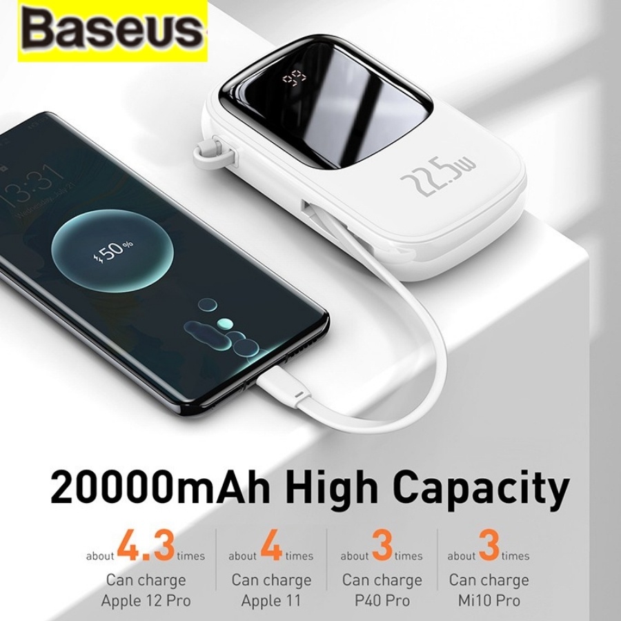 Pin sạc dự phòng Baseus 20000mAh PD, pin dự phòng 22.5W tích hợp sẵn cáp cho điện thoại thiết kế dễ dàng mang theo
