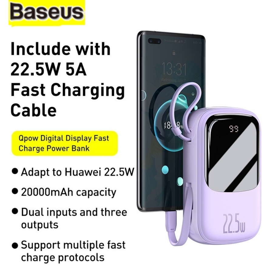 Pin sạc dự phòng sạc nhanh Baseus Qpow Digital Display 20000mAh (22.5W/ 5A , USB+Type C Port, QC/ PD Quick Charging with Type C built-in Cable) - LVA003🍏 Gói hàng bao gồm: