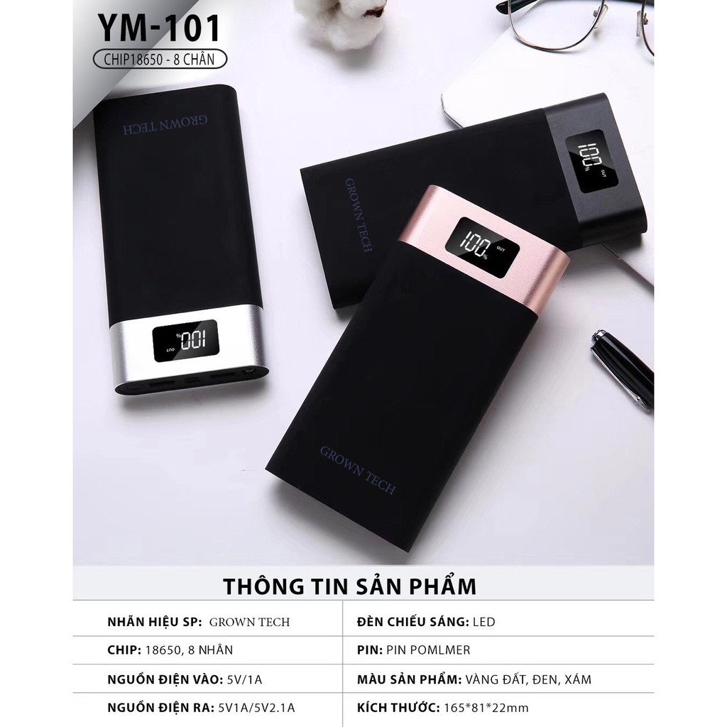 Pin sạc dự phòng GROWNTECH YM-101, sạc nhanh dung lượng cao màn hình LCD