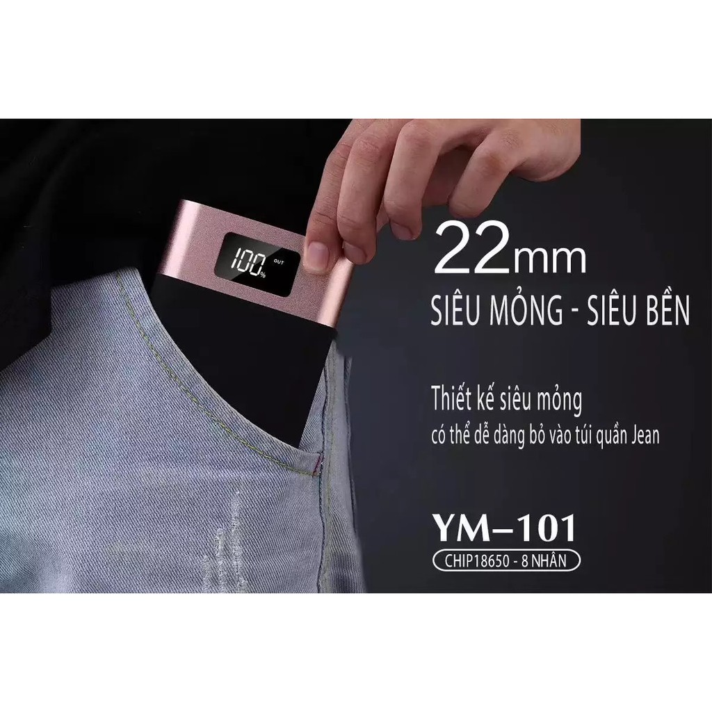 ✔️Pin Sạc Dự Phòng YM101 20000mAh Dung Lượng cao đảm bảo an toàn sử dụng, gắn chip chống cháy nổ, tự ngắt khi đầy.