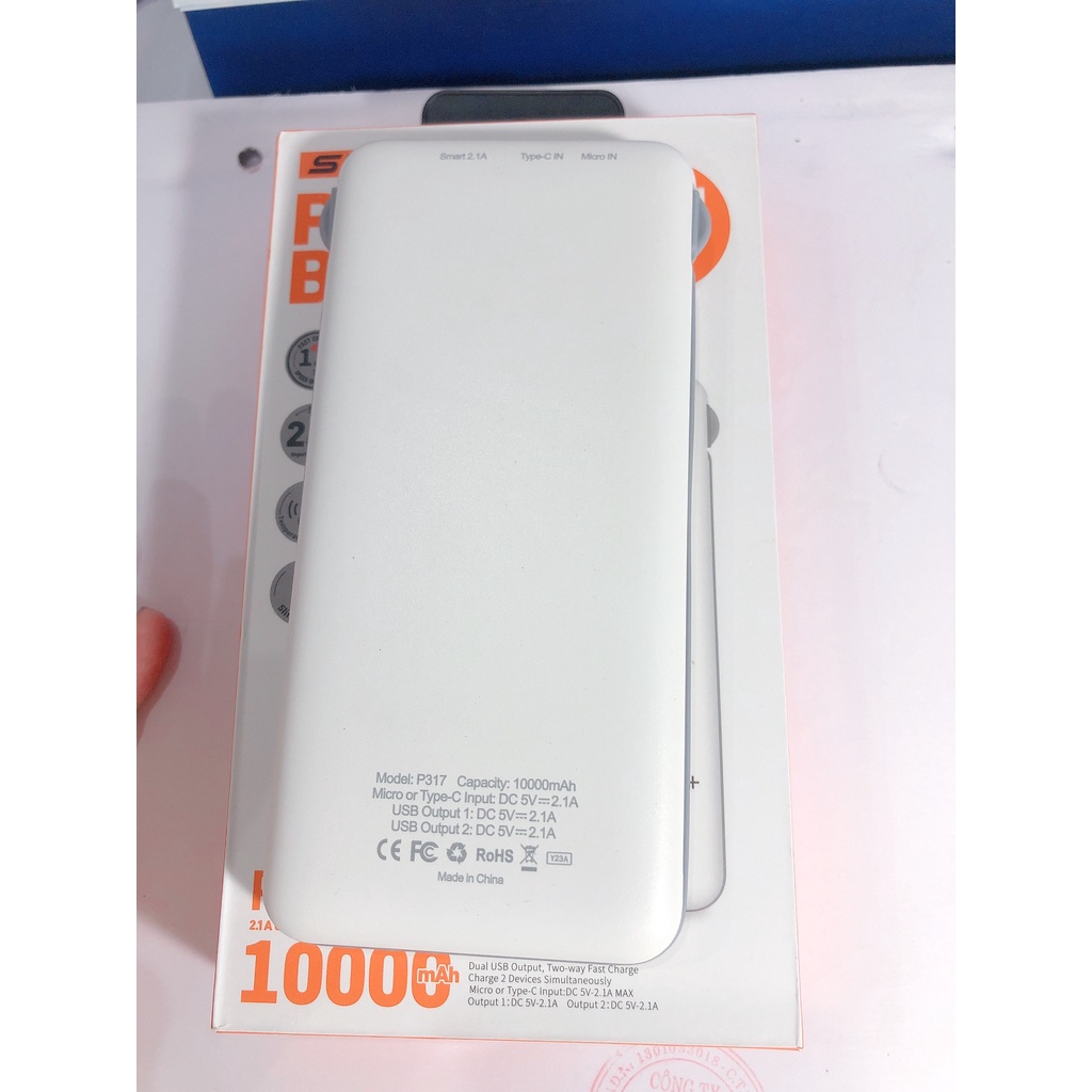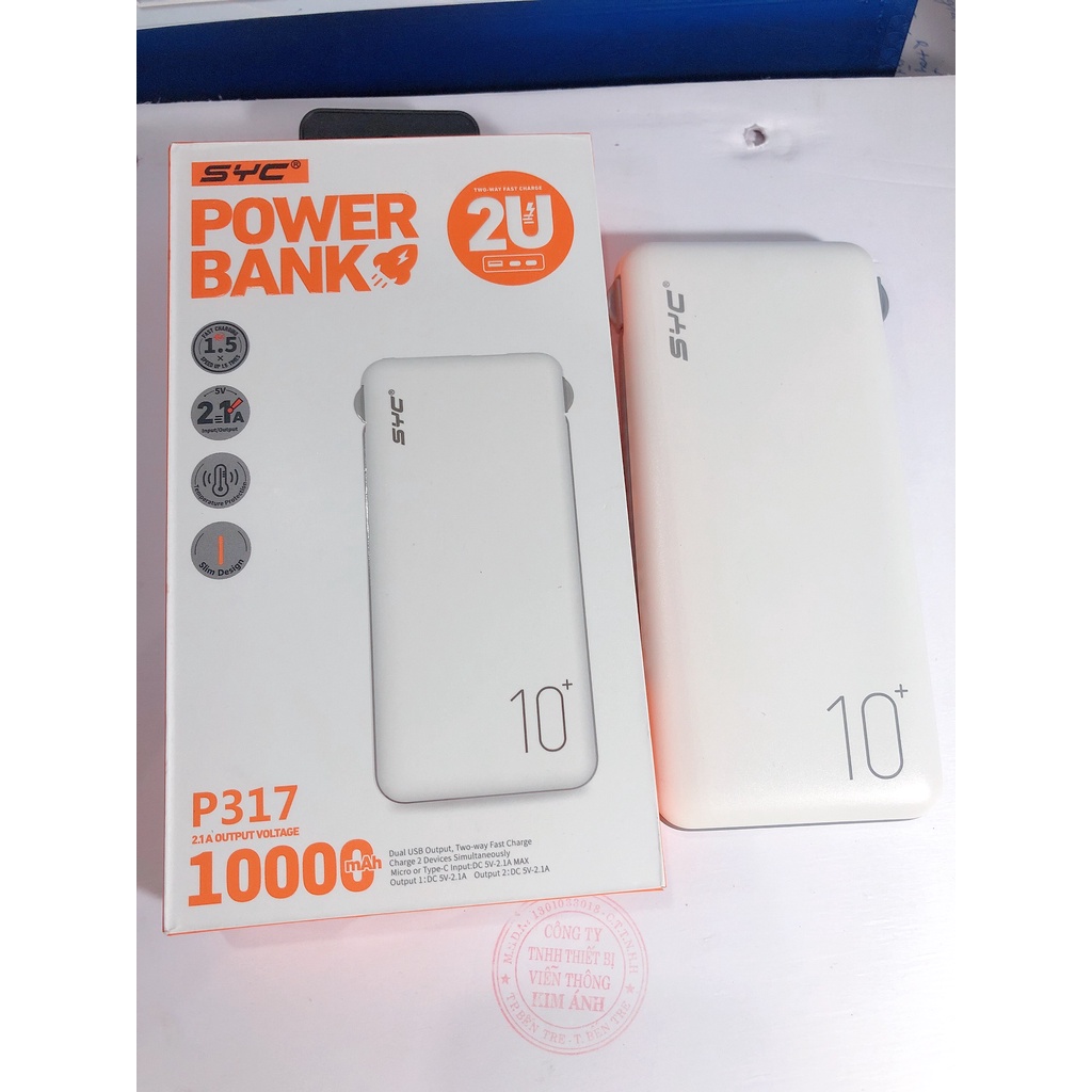 Điện Thoại & Phụ Kiện > Phụ kiện > Sạc dự phòng & Pin > Sạc dự phòng || Pin sạc dự phòng SYC P317 dung lượng 10.000 mAh đi kèm với cáp sạc hỗ trợ sạc nhiều thiết bị cùng lúcCòn hàng