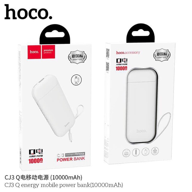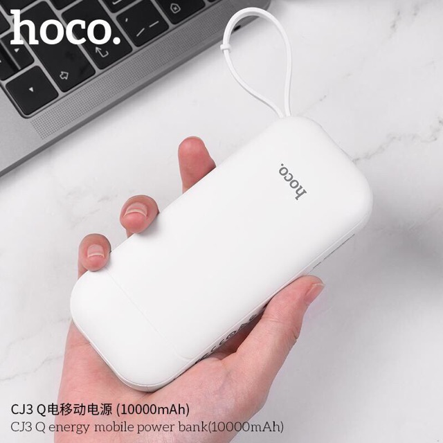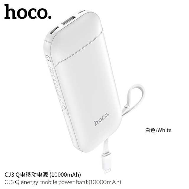 Hoco CJ3 Dung lượng 10000mAh là 1 kiểu bề ngoài mới đến trong khoảng dịch vụ Hoco (Hong Kong), mang điểm tốt có kèm cáp Lightning ngắn 12cm để sạc cho iPhone, iPad rất tiện thể dụng. có thể rút ra đoạn cáp này để sạc mà ko lo dây cáp quá dài gây bất nhân thể cho người sử dụng, rối rắm khi cho vào túi quần hoặc túi xách.1. THÔNG SỐ PIN SẠC DỰ PHÒNG HOCO CJ3