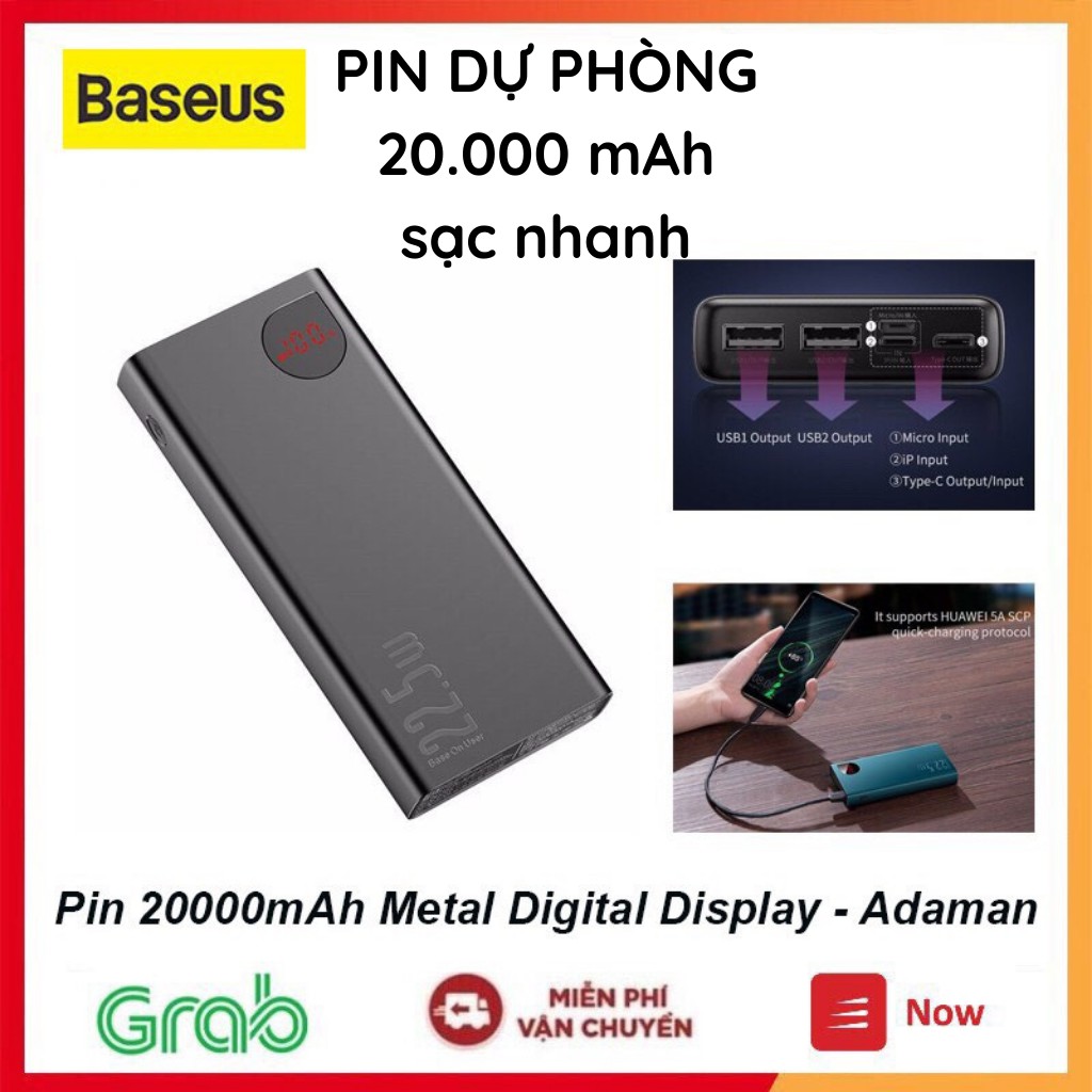 Sạc dự phòng 20000 mAh Baseus Adaman 22.5w, cục pin dự phòng sạc nhanh duystore