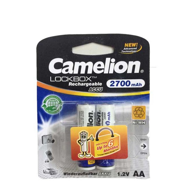 Pin Sạc Camelion AA 2700mAHPin sạc camelion AA 2700mah có nguồn năng lượng điện năng dồi dào. Độ bền và tuổi thọ cao. Có thể sạc khi pin hết dung lượng điện tích trữ. Sử dụng cho các thiết bị như đồng hồ, bộ điều khiển ,chuột máy tính, máy ảnh, mic karaoke..