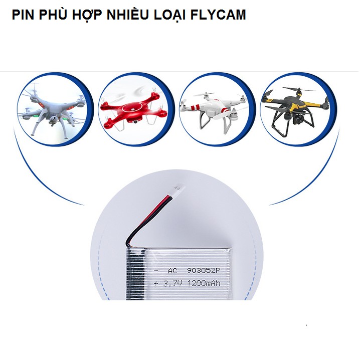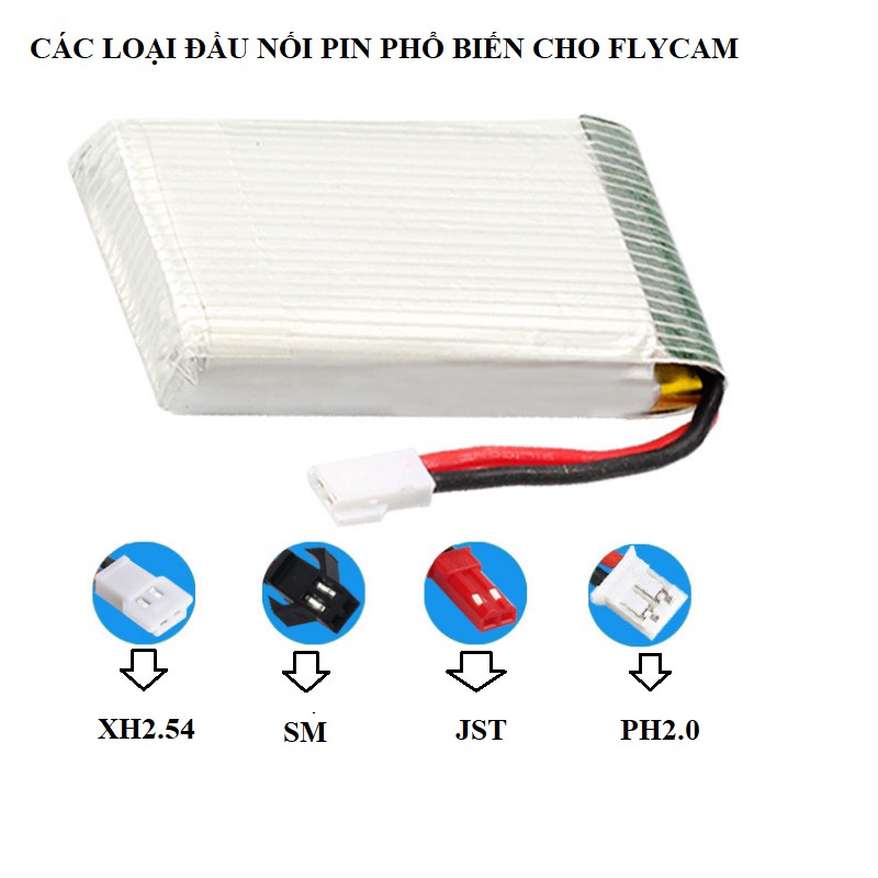 Pin sạc 3.7v dung lượng cao 1200mah dùng cho flycam máy bay điều khiển từ xa cổng nối XH2.54- Loại pin : pin sạc 3.7v