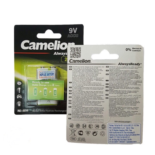 Cameras & Flycam > Phụ kiện máy ảnh > Đế pin || Pin Sạc 9V Camelion Mẫu Mới 2019 AlwaysReady NH-9V200ARBP1 Chính Hãng Vỉ 1 ViênCòn hàng