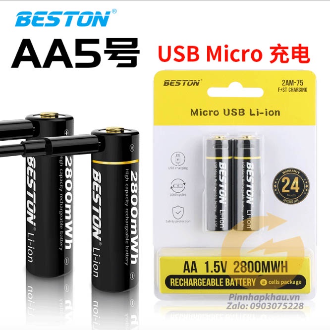 Pin sạc AA 1.5v Beston sạc trực tiếp trên pin 2220mWh - 2800mWh - 3500mWh - Bảo hành 1 đổi 1 trong 1 tháng