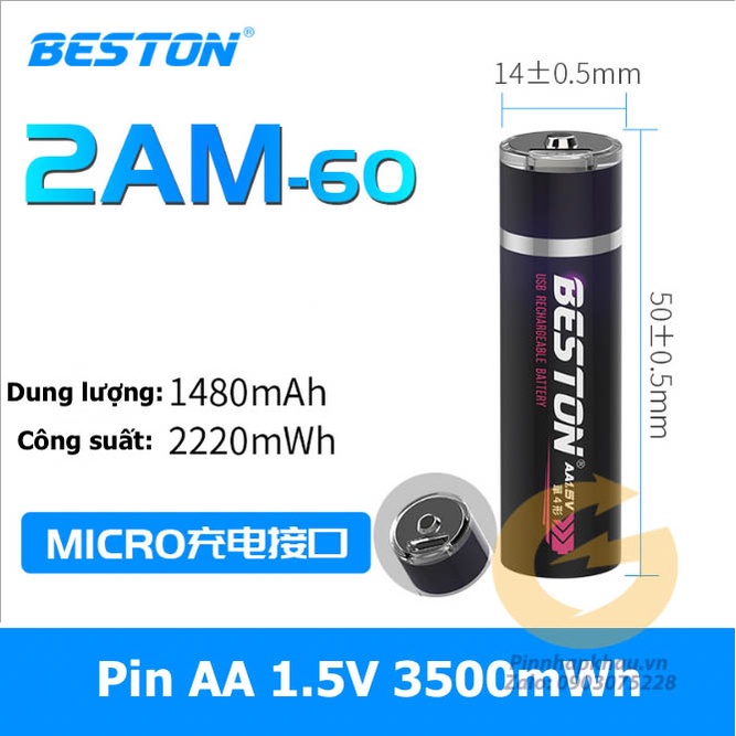 Giới thiệu Pin sạc AA 1.5v Beston sạc trực tiếp trên pin 2220mWh - 2800mWh - 3500mWh - Bảo hành 1 đổi 1 trong 1 tháng