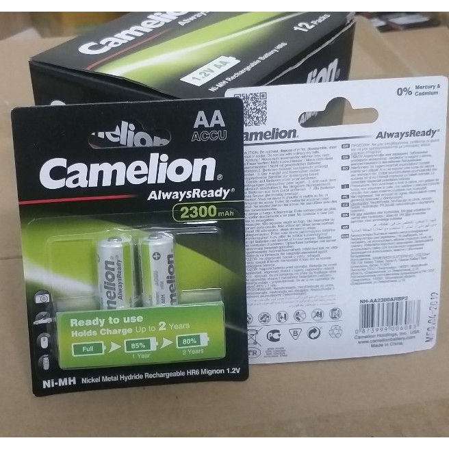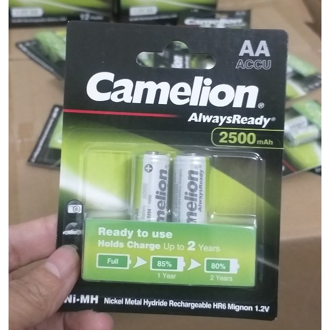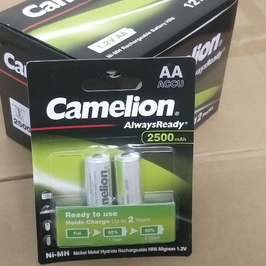 Pin sạc AA ,2300, 2500, mAh 1.2V (1 vỉ /2 viên) là pin cung cấp điện năng dồi dào cho các thiết bị thông dụng hàng ngày.Pin sạc Camelion AA , AAA 1100,2300, 2500, 2700, D900 mAh 1.2V lưu trữ được nhiều điện năng, an toàn và tuổi thọ sử dụng cao."