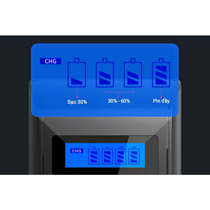 - Sạc được cùng lúc từ 1 đến 4 pin các loại.