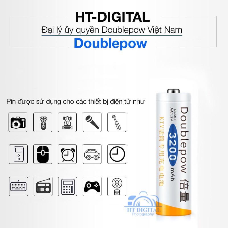 Pin Sạc AA 3200mAh Doublepow dung lượng cao cho Micro karaoke, đồ chơi trẻ em, đồng hồ treo tường
