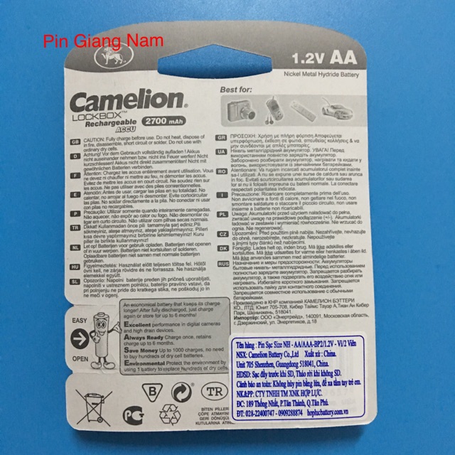 Giới thiệu Pin sạc AA Camelion 2700 trắng Mah vỉ 2 viên