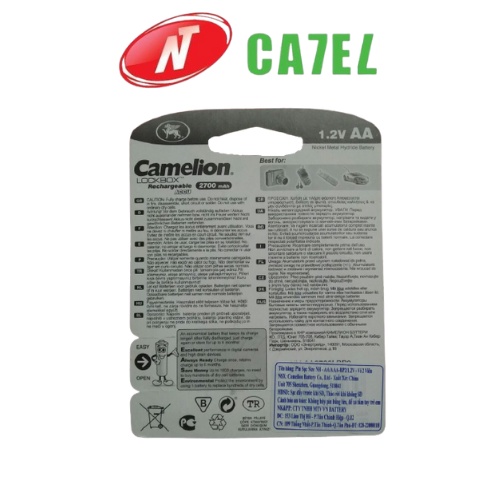 Pin sạc AA Camelion 2700mAh 1,2V vỉ 2 viên• Loại pin: Pin sạc thông dụng 1.2V