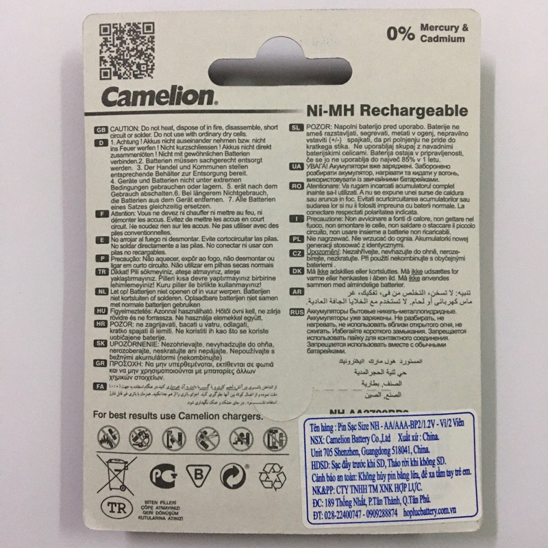 Pin sạc thường công suất cao thế hệ mới AA Camelion 2.700 mAh là loại pin công suất cao, sản xuất trên dây chuyền công nghệ Đức, Pin đóng vỉ chỉ có dòng điện thử, khách hàng mua pin về lưu ý sạc lại đầy pin trước khi sử dụng giúp kéo dài tuổi thọ pin.