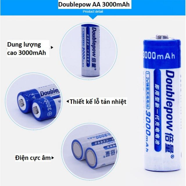 Giới thiệu Pin sạc aa Doublepow 3000mAh vỉ 4 viên cam kết dung lượng thật