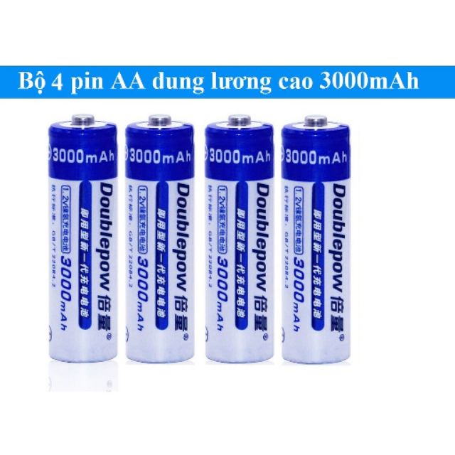 Bộ 4 viên pin tiểu sạc dung lượng cao Doublepow AA 3000mAh