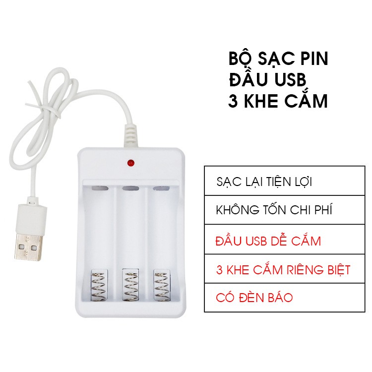 - Bộ sạc pin có 3 khe cắm