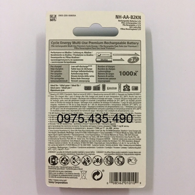 Pin Sạc AA Sony Là sản phẩm pin sạc có số lần sạc cao của hãng Sony, sản phẩm được sản xuất trên dây chuyền công nghệ Nhật Bản.