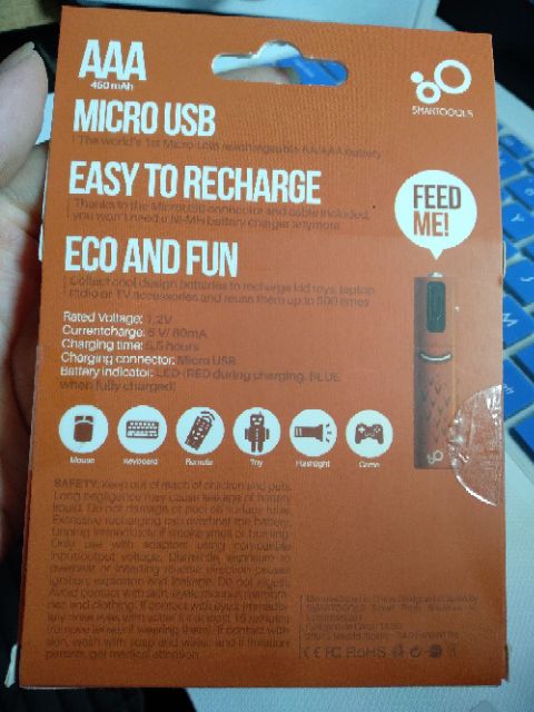 Giới thiệu Pin sạc AAA 450mAh có đầu usb