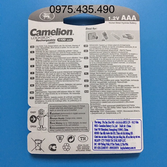 Giới thiệu Pin Sạc AAA Camelion 1100 mAh Lockbox Vỉ 2 Viên Chính Hãng Hợp Lực