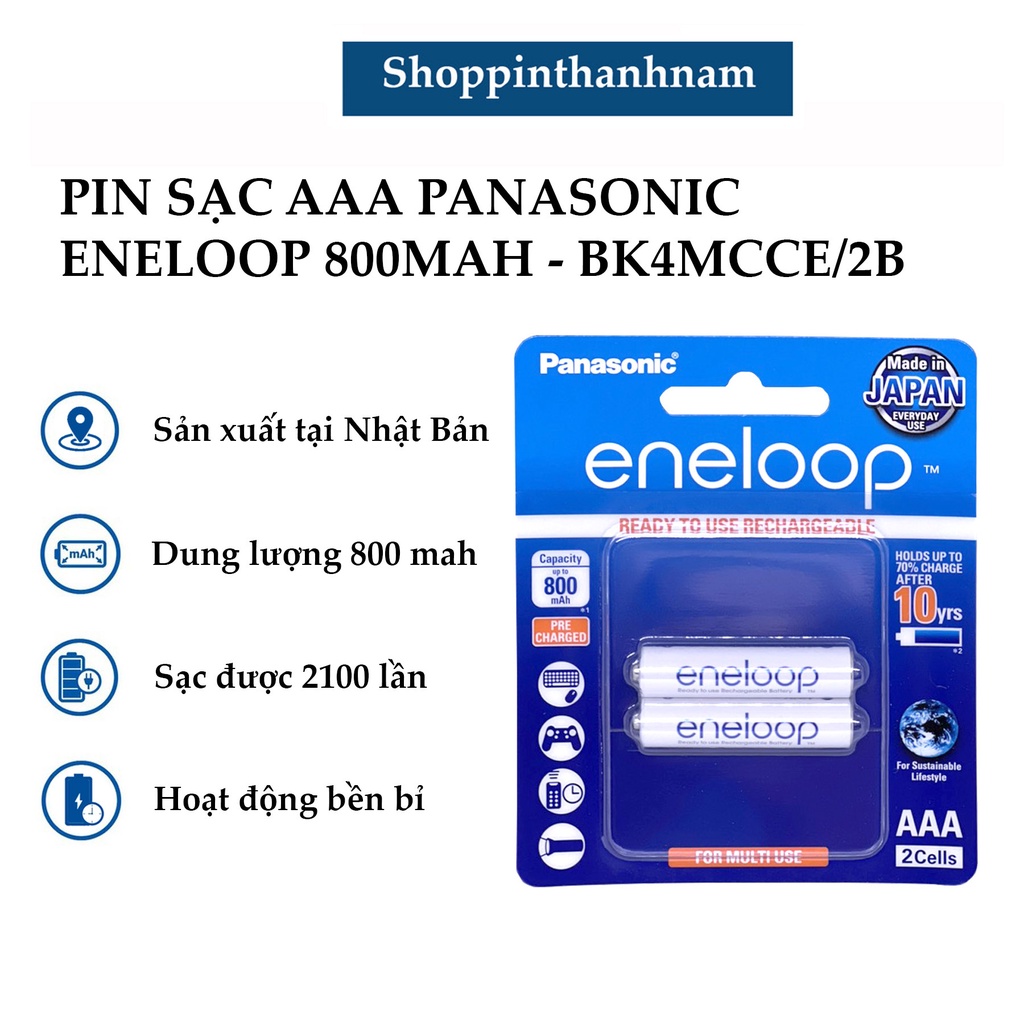 Giới thiệu Pin sạc AAA Eneloop Panasonic 800 mAh sản xuất tại Nhật Bản vỉ 2 viên chính hãng