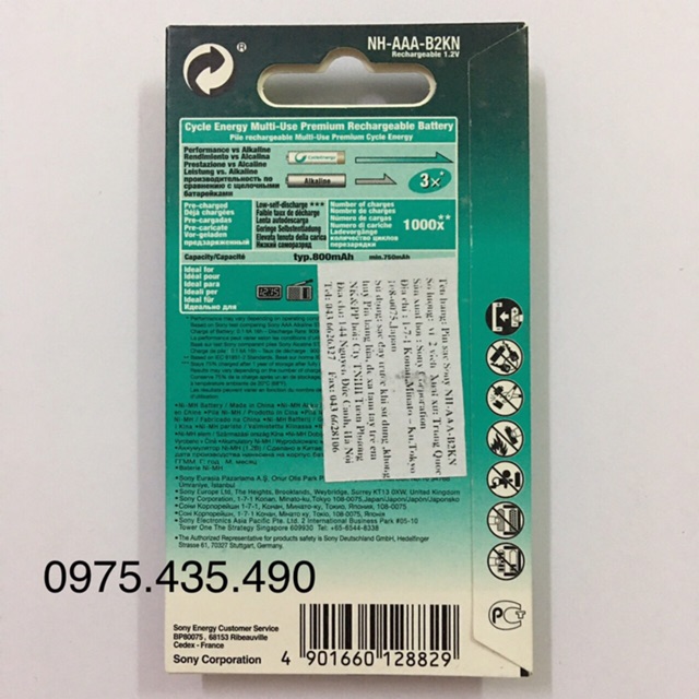 Thiết Bị Điện Gia Dụng > Pin || Pin Sạc AAA SONY Chính Hãng 800 mAh Vỉ 2 Viên Made in JapanCòn hàng