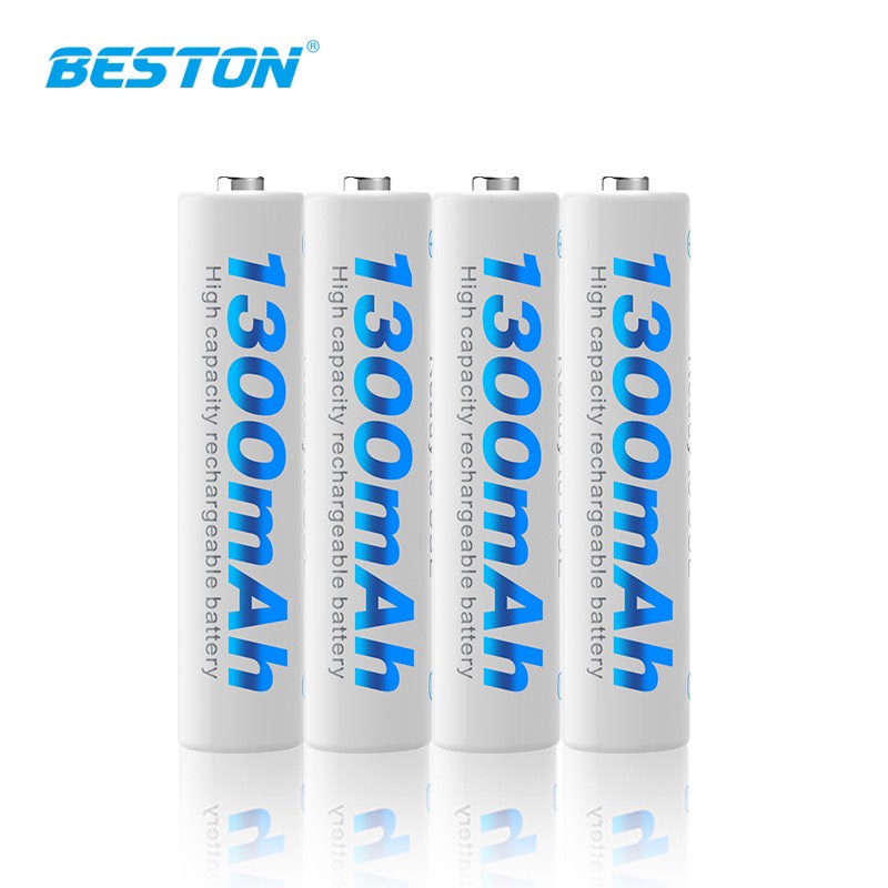 Pin sạc BESTON AAA có sẵn các dung lượng 800mAh 1100mAh, 1300mAh cho khách hàng có nhiều lựa chọn.:- Pin sạc 1.2V Ni-Mh Kích thước: dài 44mm x 11mm
