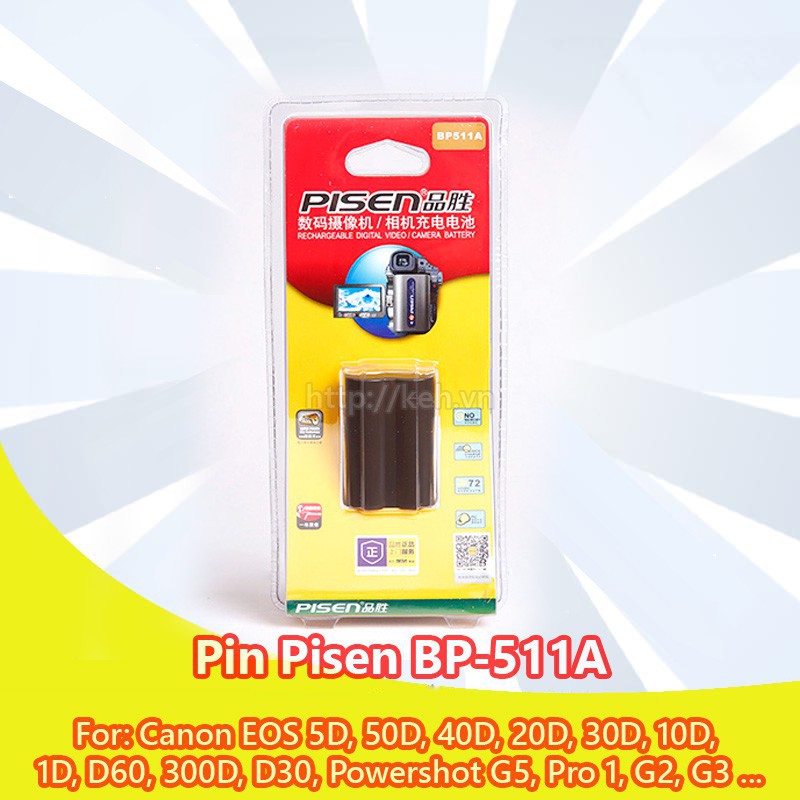 Pin, Sạc BP-511 BP-511A PI SEN cho máy ảnh Canon 50D, 40D, 30D, 20D, 5D