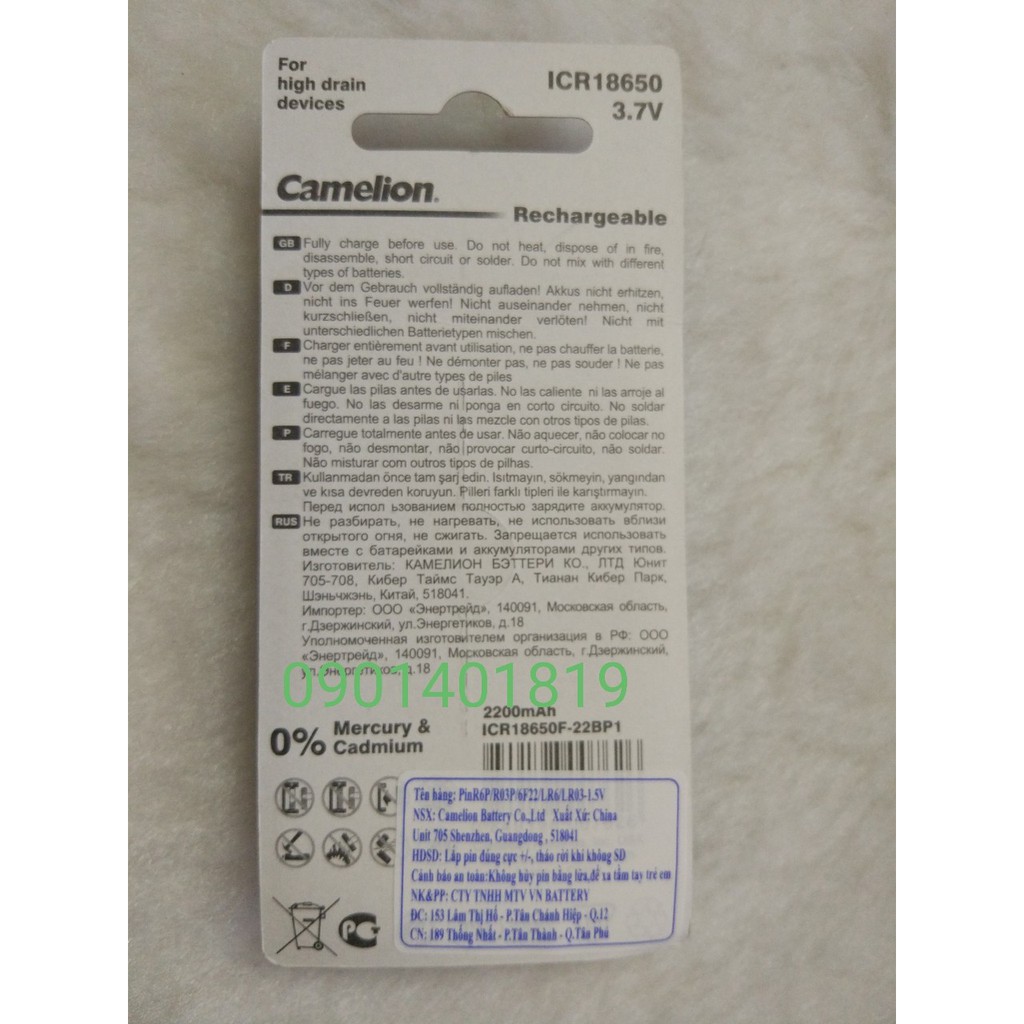 Pin Sạc Camelion Lithium 18650 - 3.7V 2200mAh- Sử dụng làm nguồn nuôi cho robot, mô hình, các mạch sạc pin, box sạc, micro bluetooth, đèn đội đầu, lđèn pin cầm tay, đèn sạc, máy dao cạo râu, quạt mini cầm tay, làm nguồn điện dự trữ khi mất điện, V...v