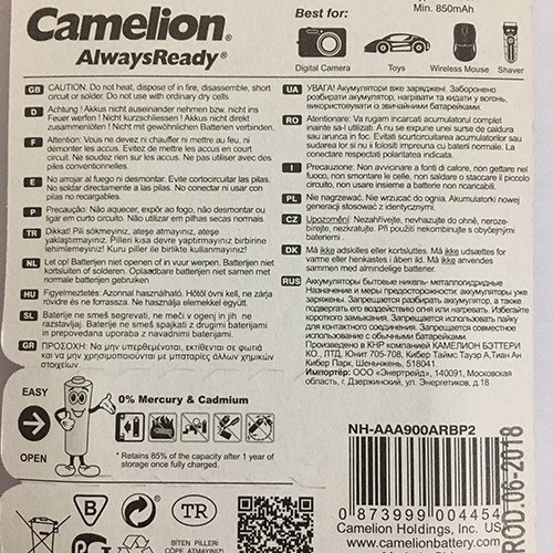 - Pin sạc Camelion 900mAh cỡ đũa AAA– Mã pin : NH-AAA900BP2