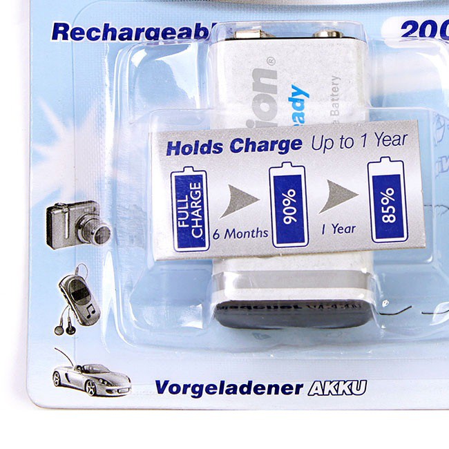 Pin sạc Camelion 200MAh 9V có dung lượng lên đến 200mAh.Hệ thống Nickel-Metal Hydrid giúp pin hoạt động bền bỉ và cho tốc độ nạp nhanh chóng. gian để pin sạc đầy.Sản phẩm tương thích với các bộ sạc thông dụng. Chỉ một lần sạc bạn đã có thể sử kéo dài thời gian sử dụng thiết bị và tiết kiệm chi phí hơn.