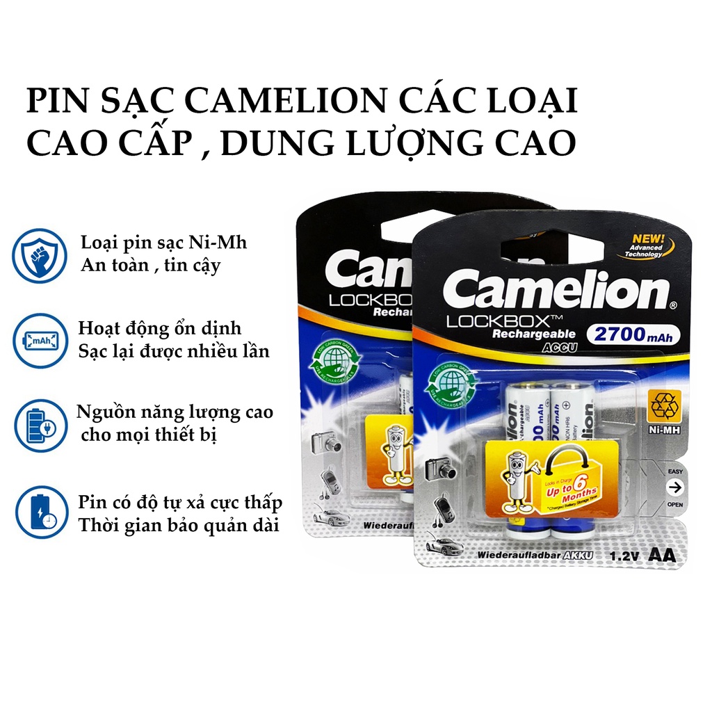 - Pin sạc Camelion có dung lượng tốt , giá mua hợp lý- Là dòng pin sạc rất phổ biến hiện nay trên thị trường