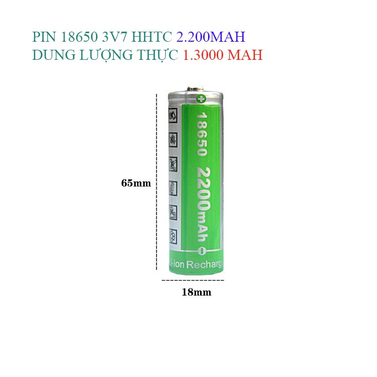 Pin Sạc Cell 18650 HHTC Green 2200mah 3.7V dùng cho loa phóng thanh và đèn pinThương hiệu HHTC