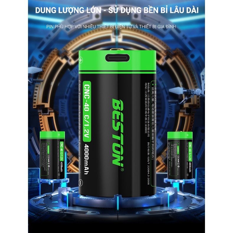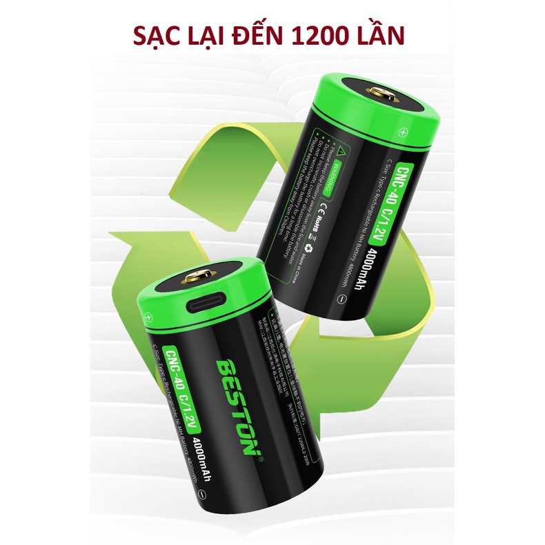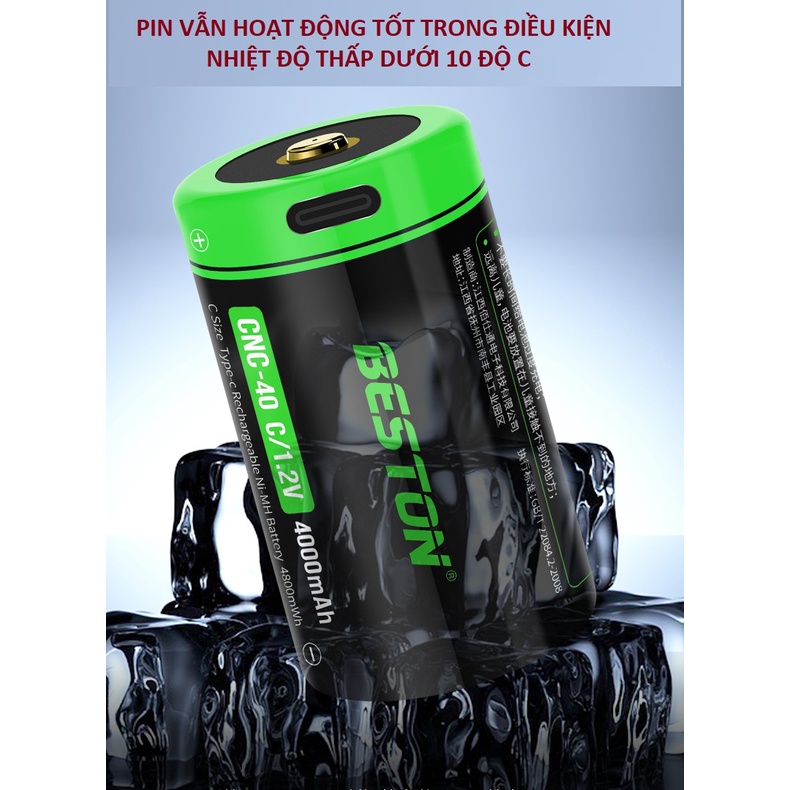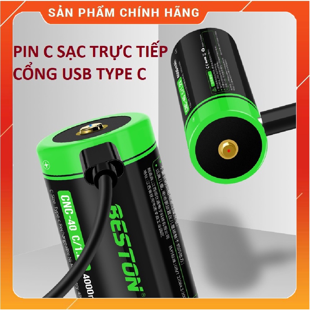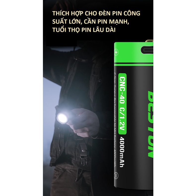 Pin sạc trực tiếp cỡ C Beston 1.2V, 4000mAh. cổng sạc type C, sử dụng cho các thiết bị điện tử và thiết bị gia đình.