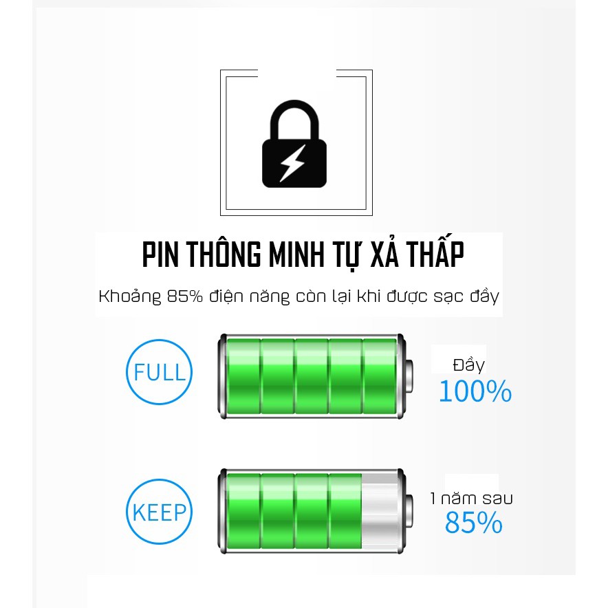 Nhờ có chip tự ngắt nên bạn hoàn toàn có thể yên tâm không sợ cháy nổ. Điểm nổi bật thứ 2 của pin là điện áp 1.5v giúp pin mạnh hơn pin 1.2v.