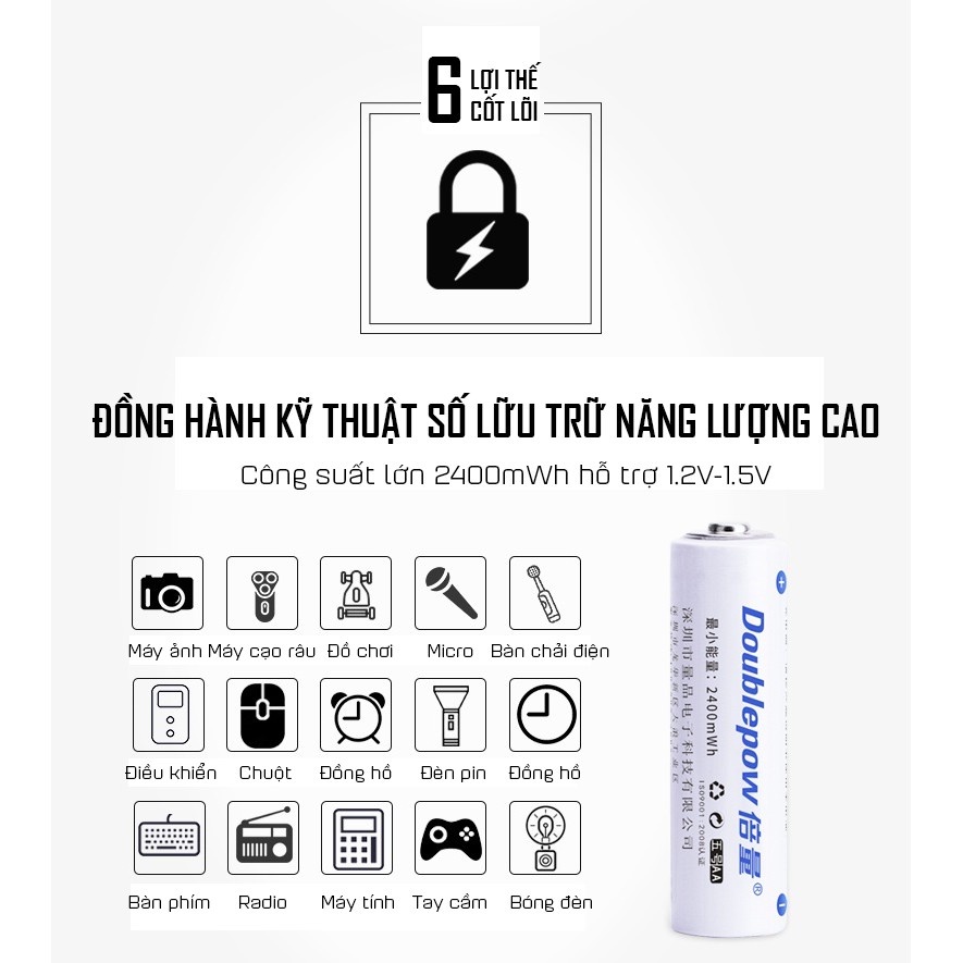Điện Thoại & Phụ Kiện > Phụ kiện > Sạc dự phòng & Pin > Sạc dự phòng || Pin Sạc Cổng Micro USB AA 1.5v Doublepow 2400mWh dùng cho đồ chơi, Micro karaoke, máy ảnh - Hàng Chính HãngCòn hàng