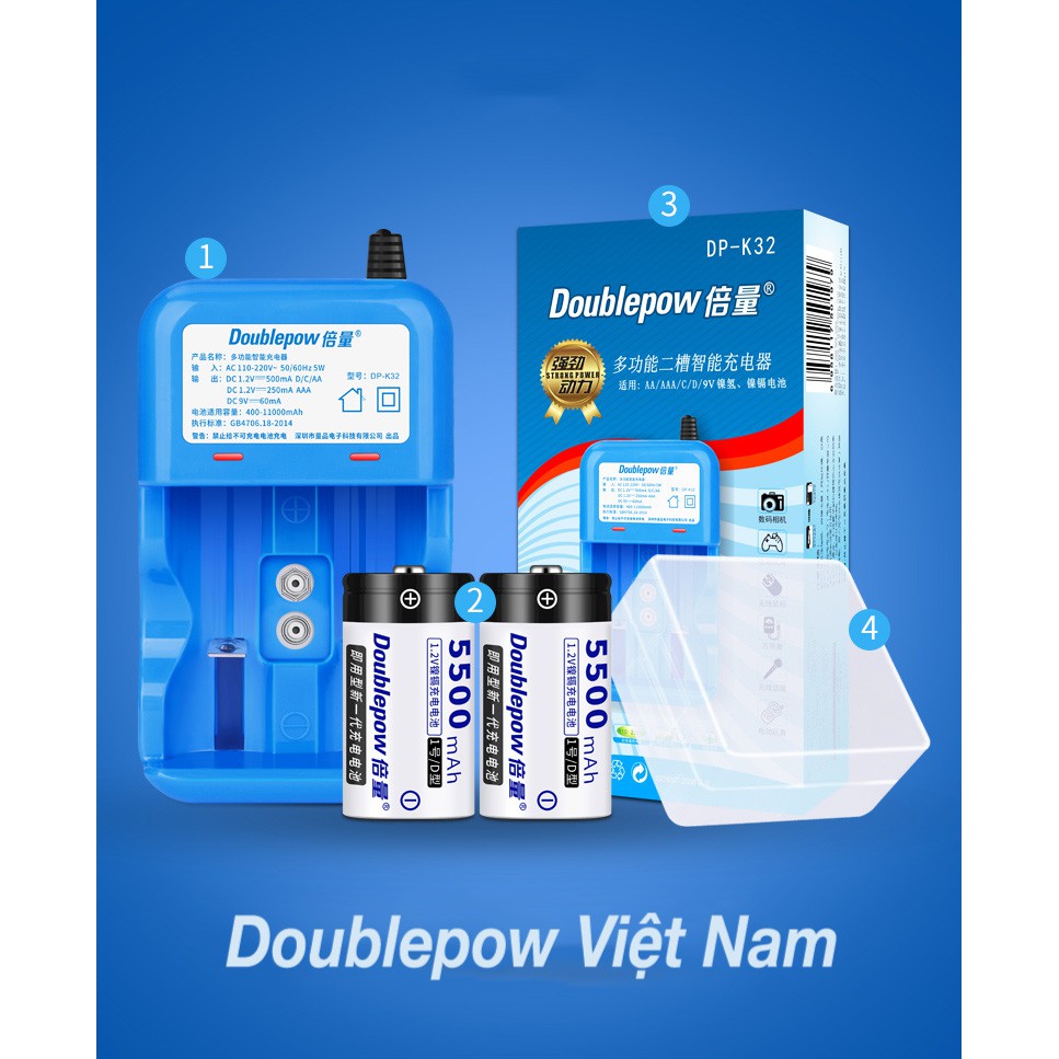 Nhà cửa & Đời sống > Dụng cụ & Thiết bị tiện ích > Dụng cụ > Khác || Pin Sạc Đa Năng 2A/3A/9V/C/D - Bộ Sạc 2 Pin Đại D DP-K32, Bộ Sạc Pin Đa Năng Báo Đèn Khi Pin Đầy, Pin D Sạc Cho Bếp GaCòn hàng
