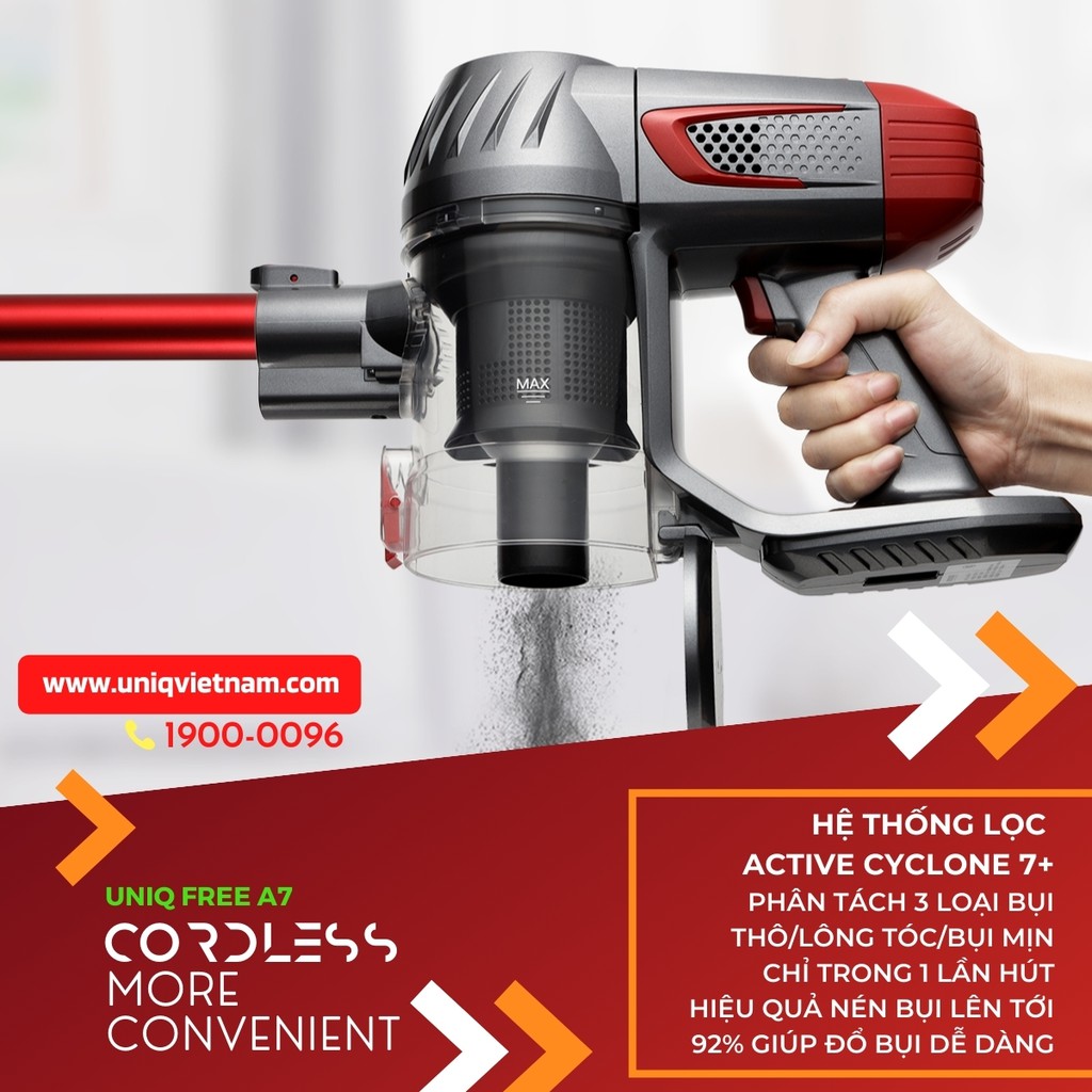 Lưu ý: Sản phẩm chỉ dùng để thay thế và sử dụng cho model máy hút bụi cầm tay không dây gia đình UNIQ Free A7