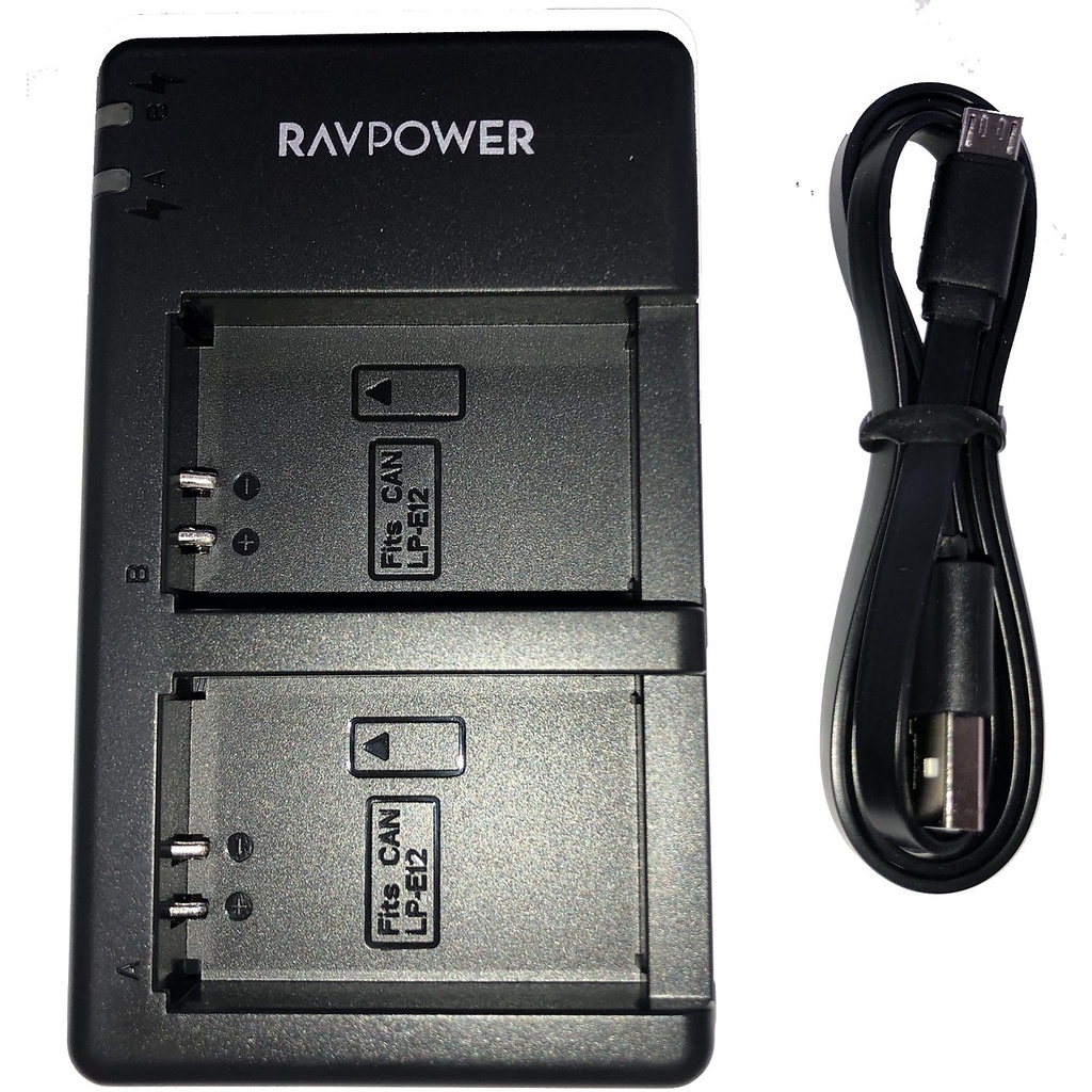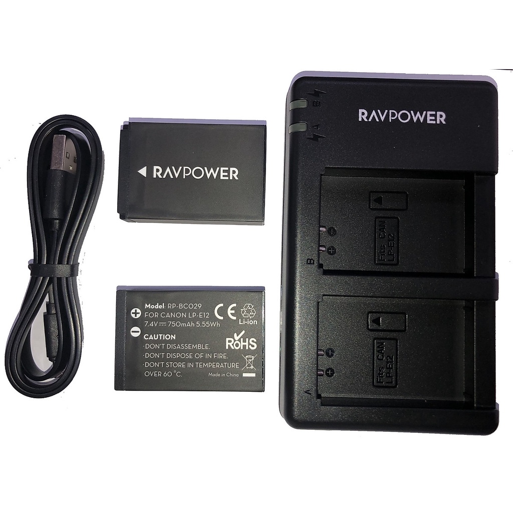 Bộ Pin Sạc đôi RAVPower Canon LP-E12 Cho Canon M10,M6,M50,M100