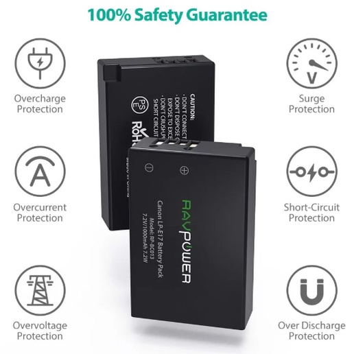 Bộ Pin Sạc đôi RAVPower Canon LP-E12 Cho Canon EOS M10, EOS M6, EOS M50, EOS M100, EOS M200, EOS 100D, EOS 200D, EOS 250D...Mã sản phẩm RAVPower RP-BC029