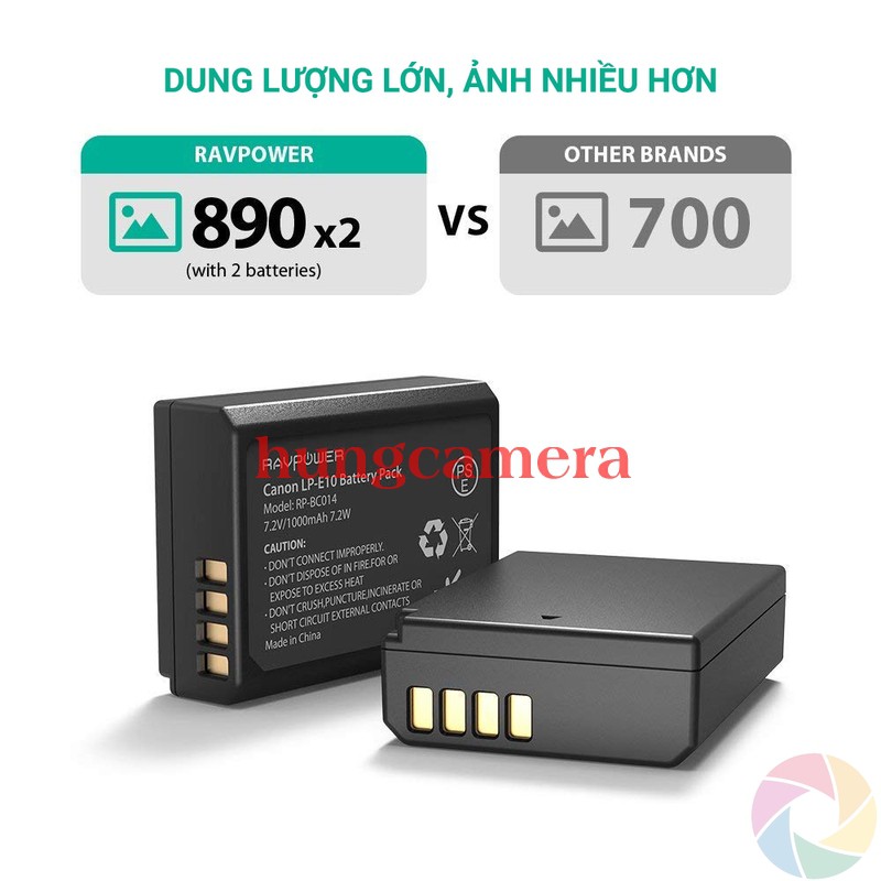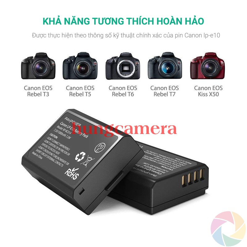 Bộ Pin Sạc đôi RAVPower Canon LP-E10 Cho Canon 3000D, 1500D, 1300D, 1200D, 1100D