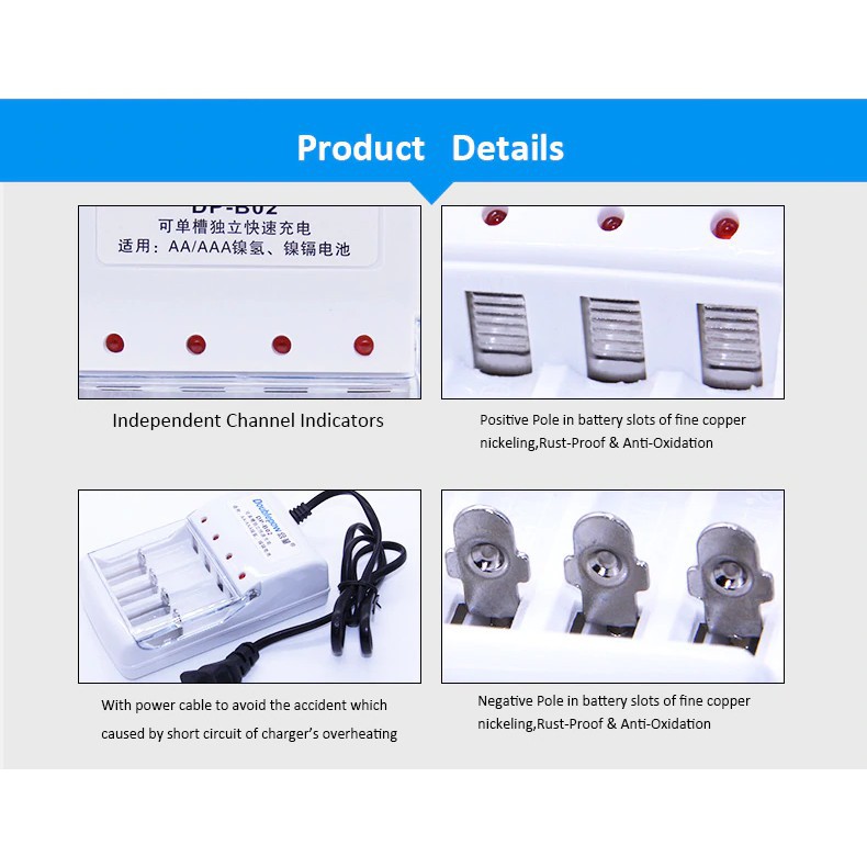 - Sạc được cùng lúc từ 1 đến 4 pin các loại.