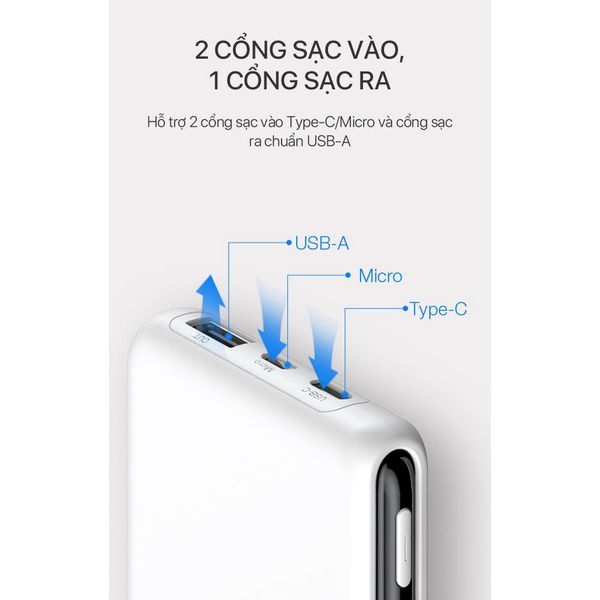 ✔ 2 Cổng sạc vào : Type-C và Micro USB