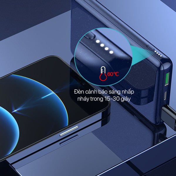 Tự ngắt khi quá nhiệt: trong quá trình sạc, nhiệt độ pin cao quá 60 độ C sẽ tự ngắt, đèn báo sáng nhấp nháy nhở trong 15-30s, đảm bảo an toàn khi sử dụng