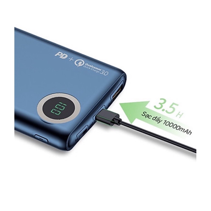 Với cổng sạc Type-C, sử dụng cùng củ sạc PD sẽ giúp sạc nhanh cho chiếc Pin sạc dự phòng 10.000mAh ROBOT RT100Q có dung lượng 10.000mAH được sạc đầy chỉ trong vòng 3.5 giờ.