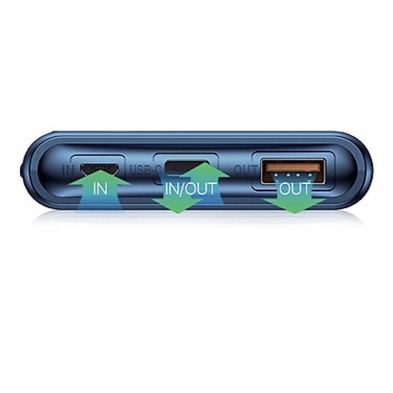 Pin sạc dự phòng 10.000mAh ROBOT RT100Q được thiết kế thông minh vì tích hợp cổng USB Type-C cho chức năng vừa có thể sạc vào vừa có thể sạc ra, giúp tiết kiệm được không gian sạc. Ngoài ra, Pin có thể sạc vào bằng cổng Micro USB và sạc ra bằng cổng USB.