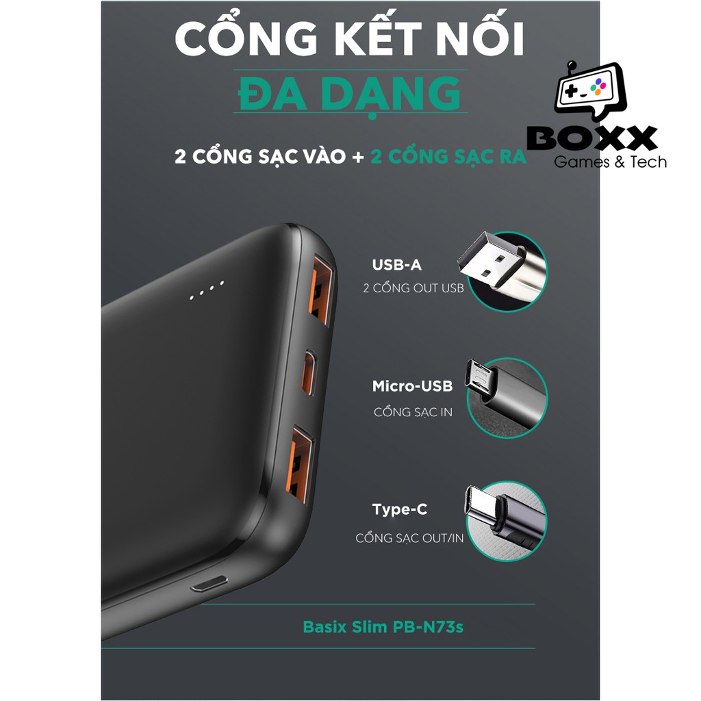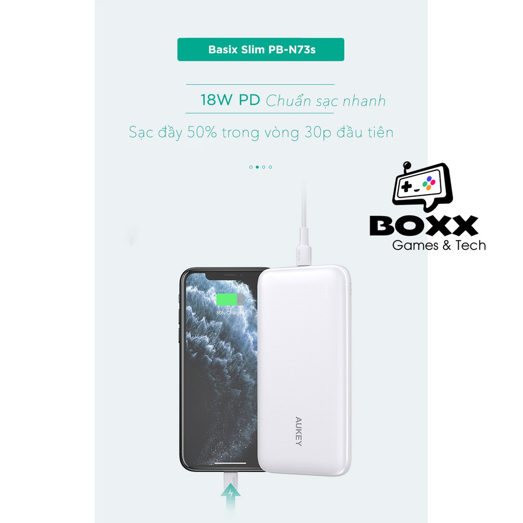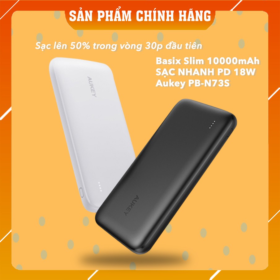 Pin Sạc Dự Phòng 10000mAh Aukey PB-N73S, pin dự phòng Aukey Cổng Sạc Nhanh Type C 18W, 2 Cổng USB-A