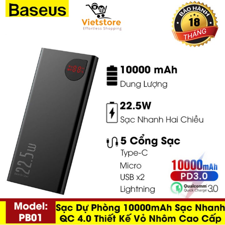 Thương hiệu: Baseus | Xem thêm các sản phẩm Pin sạc dự phòng di động của BaseusMô tả ngắn