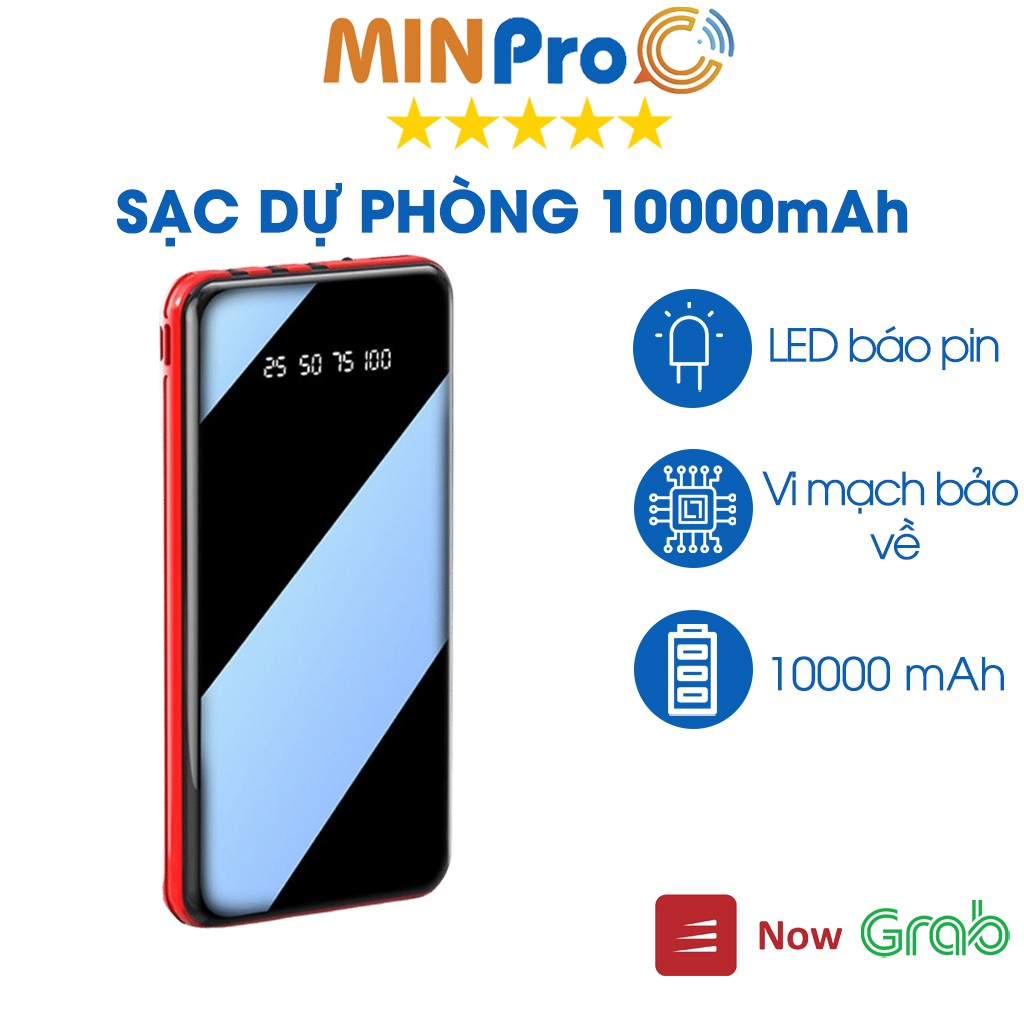 Pin Sạc Dự Phòng 10000mAh Hình Chữ Nhật Mini, Nhỏ Gọn, Tặng Kèm Dây Cáp 3 Đầu Và Có Miếng Đỡ Điện Thoại - MINPROMINPRO chuyên về các sản phẩm điện tử tiêu dùng, phụ kiện điện thoại, máy in,...